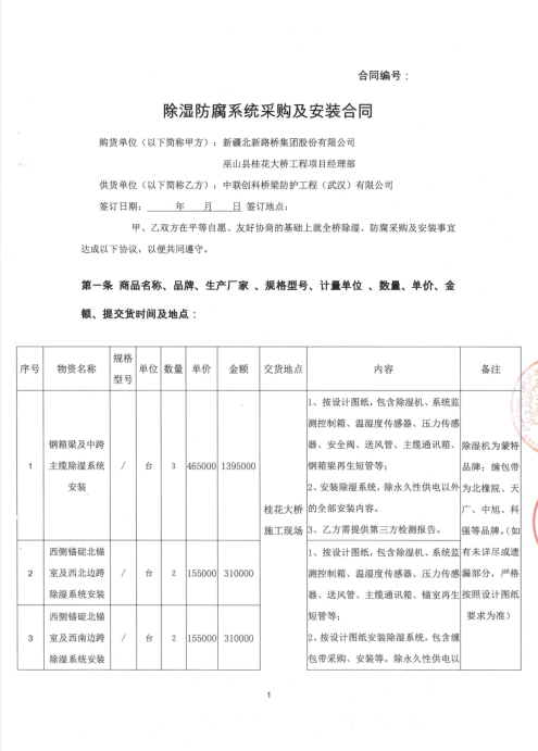 我公司于2022年承接巫山县桂花大桥除湿系统。(钢箱梁及中跨主缆除湿系统安装3套、西侧锚碇北锚室及西北边跨除湿系统安装2套、西侧锚碇北锚室及西南边跨除湿系统安装2套、东侧锚碇北锚室及东北边跨除湿系统安装2套、东侧锚碇北锚室及东北边跨除湿系统安装2套、主缆防腐2100平方米)