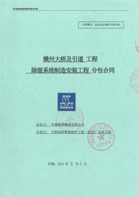 我公司于2021年承接广西横州大桥除湿系统(钢箱梁除湿系统6套、锚室除湿系统4套、鞍室除湿系统2套、主缆除湿系统2套、监控系统1套)