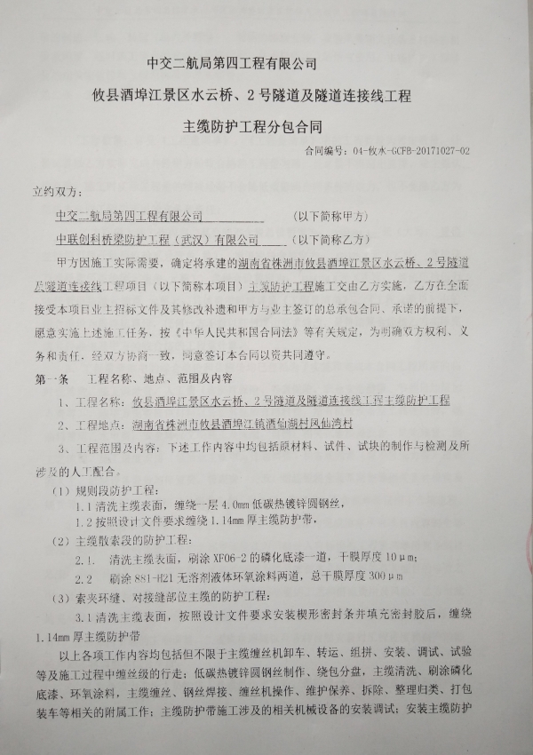我公司于2017年10月承接了该项目的主缆缠丝、主缆缠带及除湿系统工程。