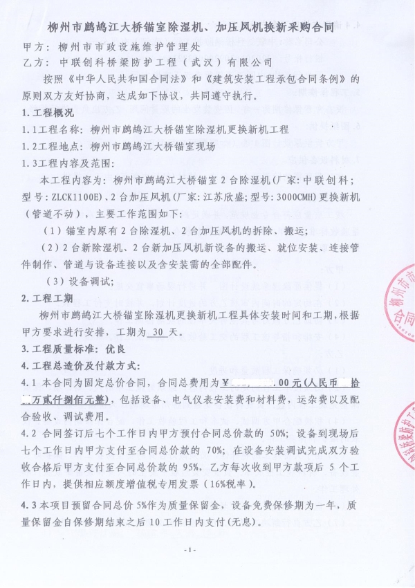 我公司2018年9月获得该大桥两侧锚室除湿设备更换新机合同。