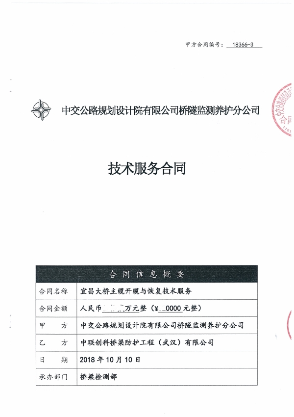 我公司2018年10月获得该大桥主缆开缆检测技术服务合同,进行主缆开缆检测并为两侧主缆加装透明观察窗。