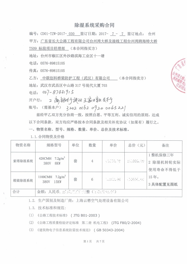 台州湾跨海特大桥为双塔双索面叠合梁斜拉桥,全长4038米,桥梁主跨488米,主墩有64根桩基,最长的桩基深长158米,为目前国内最深长的直径桩。大桥钢箱梁设计安装6套除湿系统。