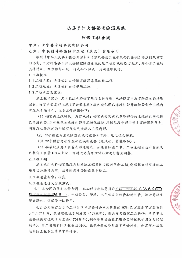 忠县长江大桥位于重庆市忠县,是一座单跨加劲桁架梁悬索桥。忠县长江大桥是长江上唯一的通体红色的大桥,主桥560米,引桥639.73米。大桥于2001年9月竣工通车,由于锚室渗水严重,于2016年底对锚室加以整治,同更换了锚室内的4套除湿设备,增加了2套主缆除湿设备,并且对主缆进行了缠包带保护。